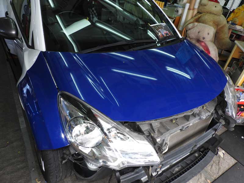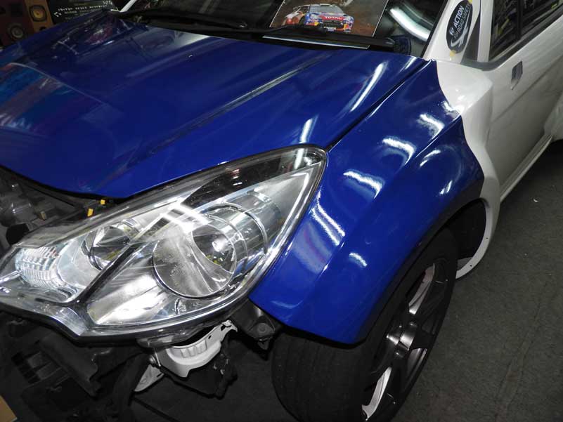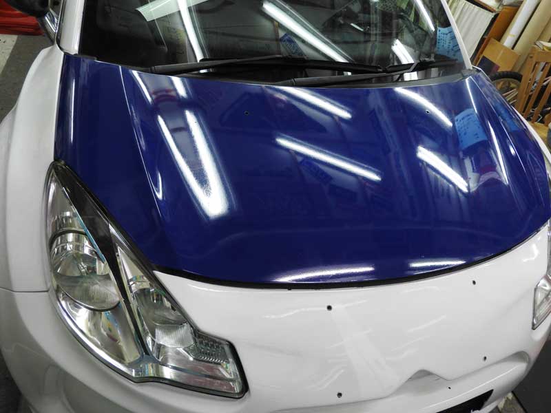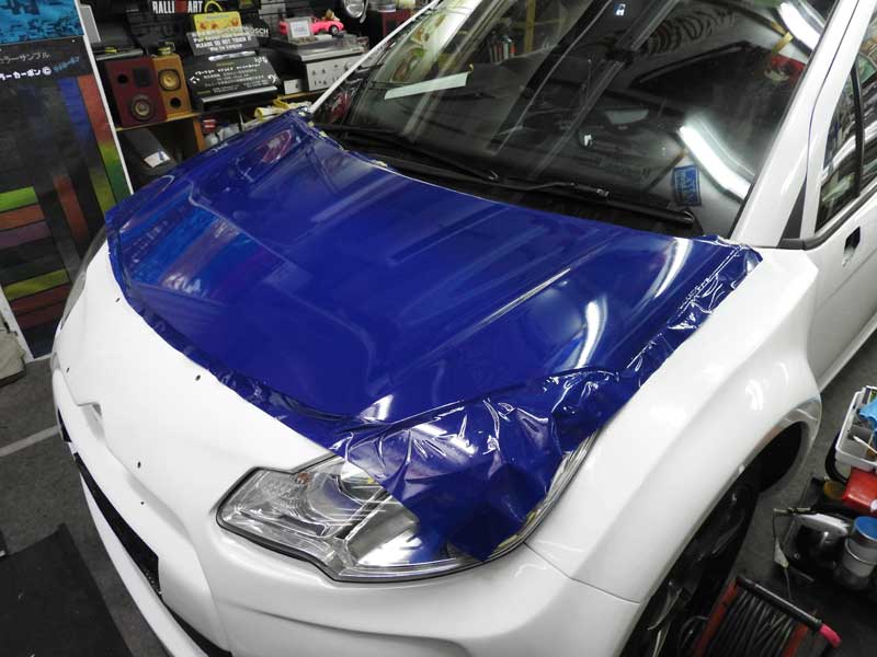 本日完成しました 本日納車しました 今回のDS3は全てのカラーリングに最高級のラミネートフィルムを貼って施工しています おなじみの洗車からのスタートです ボンネットとバンパーとフェンダーの青が貼れました 4月2日 画像をアップしました