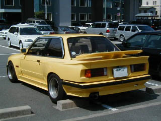 5リッタークラスのクルマでも無いのに、ホイルの面が見えない程太い リアタイヤ。それを収めるために大幅に拡張されたフェンダーは、元の ボディラインと見事な調和を見せている。塗装も綺麗、もちろんそれを 活かすためにきちんと掃除も欠かさない。